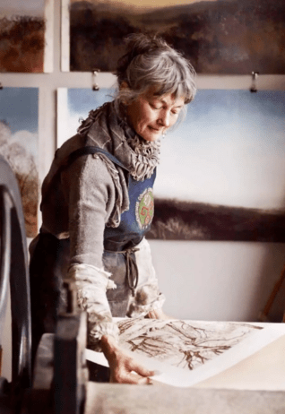 Bridget uses a variety of printmaking techniques which enable the viewer to enter an elusive and interior world of nature. Drawing is the most important factor in her work. Paying attention to Nature’s forms and relationships creates a close connection to the environment and finding that rhythm and harmony through the drawing, we are enriched.