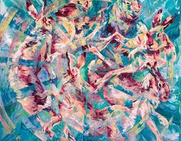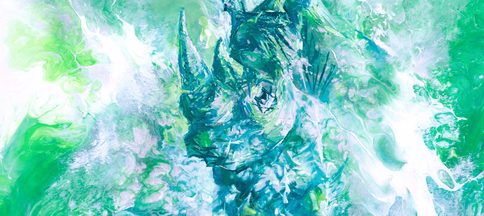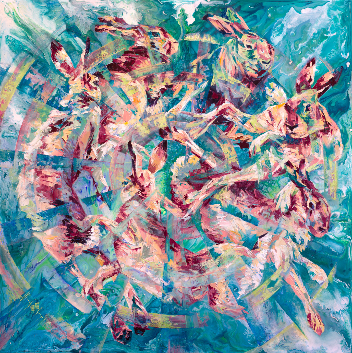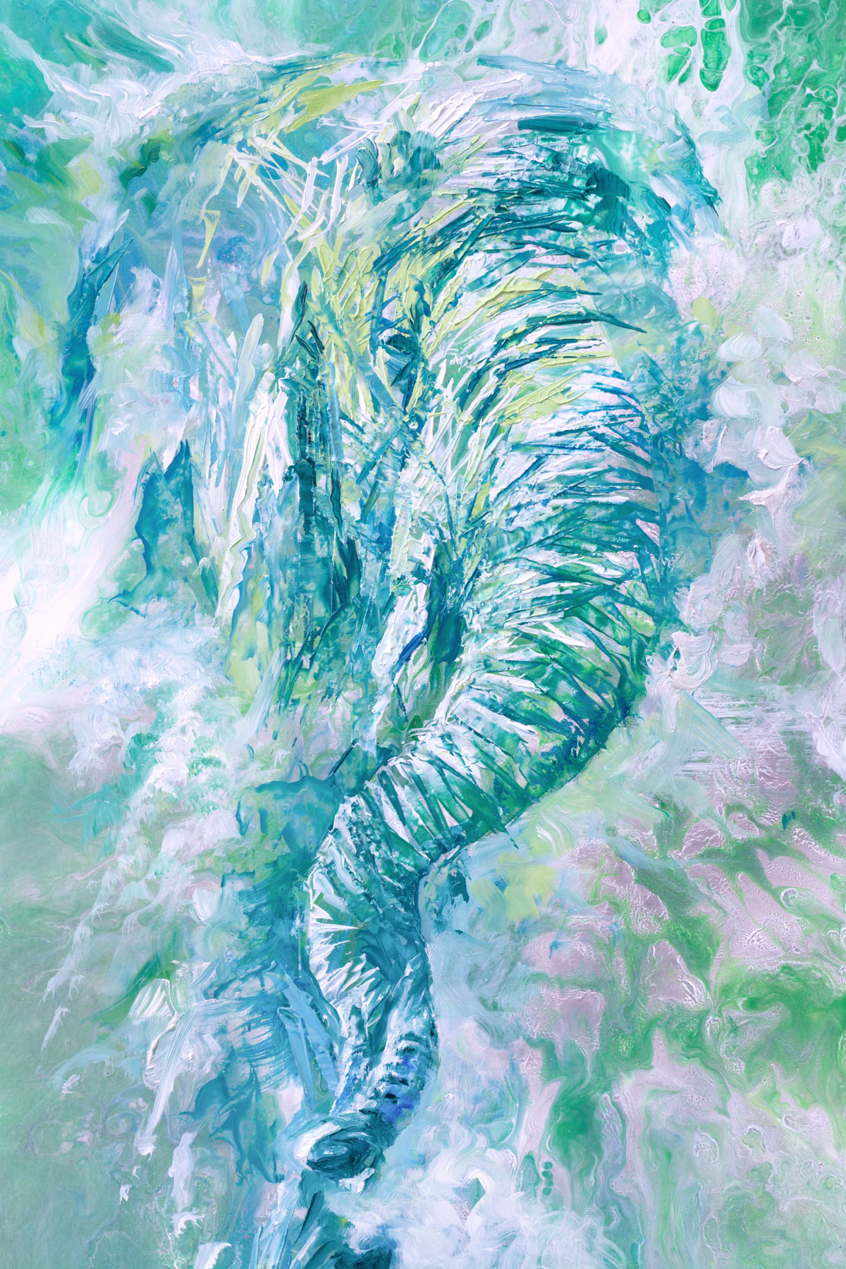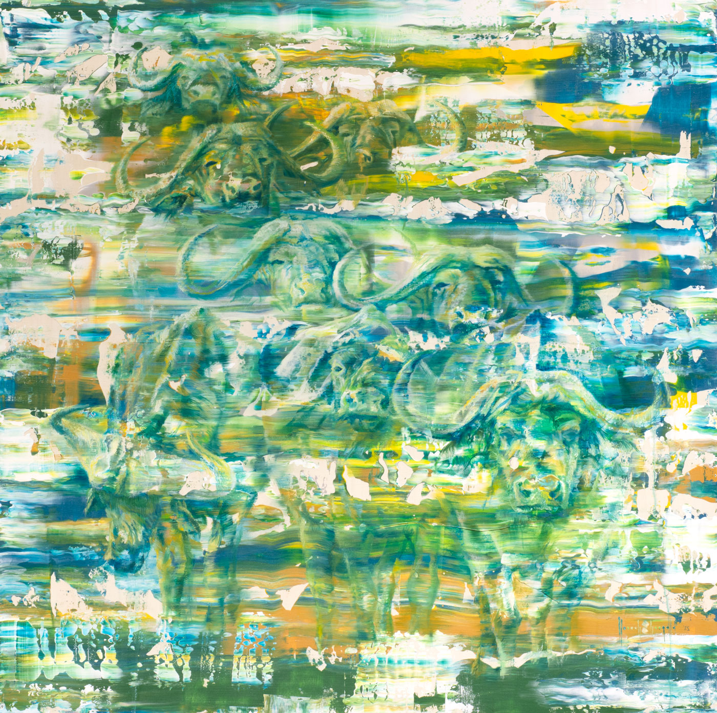 Shergold began painting in 2016 whilst flying helicopters for the Army in Kenya and is entirely self-taught. Originally studying veterinary science at Cambridge University, she applies her anatomical knowledge to her paintings whilst playing with colour, texture and geometric ‘interruptions’. Ever keen to keep her work loose, Shergold often ‘knocks back’ a painting by deliberately scraping the paint from the canvas, leaving the shadows of previous layers to appear at intervals and adding interest to the finished piece.