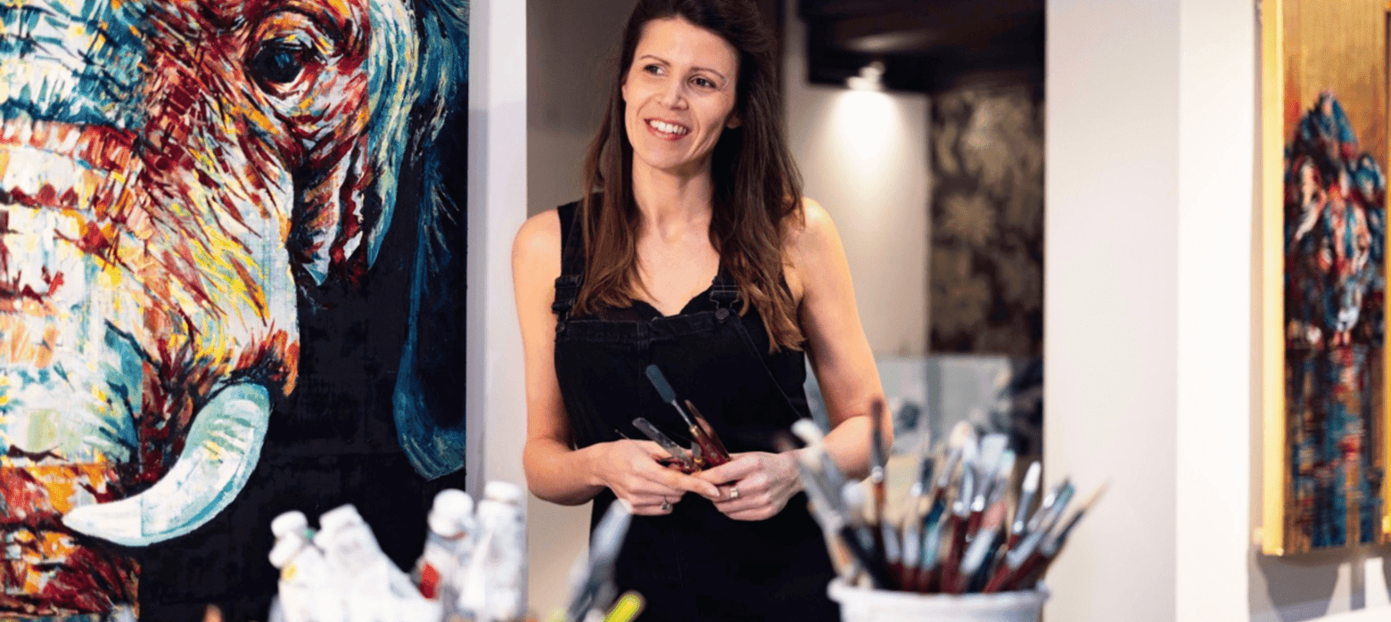 Hannah Shergold only left the Army in 2018, but since then has become one of the most successful self-representing artists in the UK, with her art raising almost £370,000 for charity. Her unique, colourful style uses palette knives and mixed media to create vibrant, energetic representations of the natural world. She weaves together acrylic paint pouring, gold leaf and impasto texture without compromising the anatomical integrity of her subject.