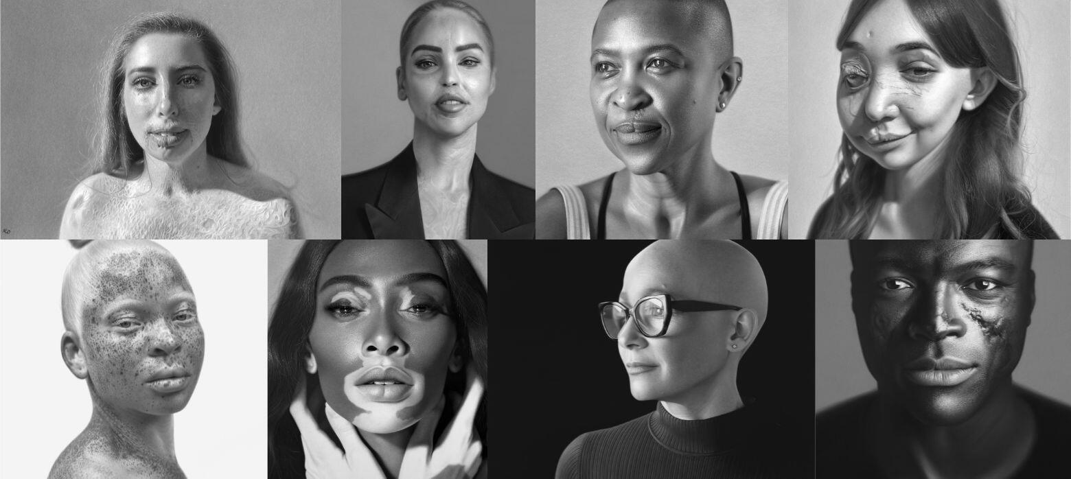 Illustrated above is images from Kelvin's latest project, "Drawing Awareness". In this body of work, Kelvin intends to provide a positive narrative and draw awareness to our unique and varied skin types and conditions. Engaging and educating an audience by learning through art about people with visible differences and skin conditions. A narrative based on relevance, acceptance and inclusion whilst promoting a positive change in people's attitudes towards our many differences.