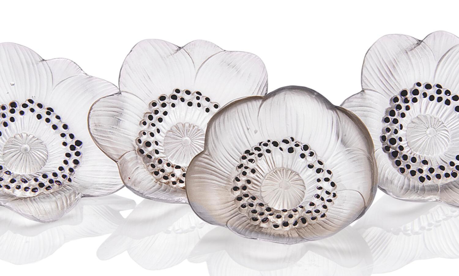 Banner - René Lalique (French 1860-1945) - FIVE ANÉMONE OUVERTE TABLE DECORATIONS, NO. 1179 - Lyon & Turnbull - Lalique April 2023.jpg