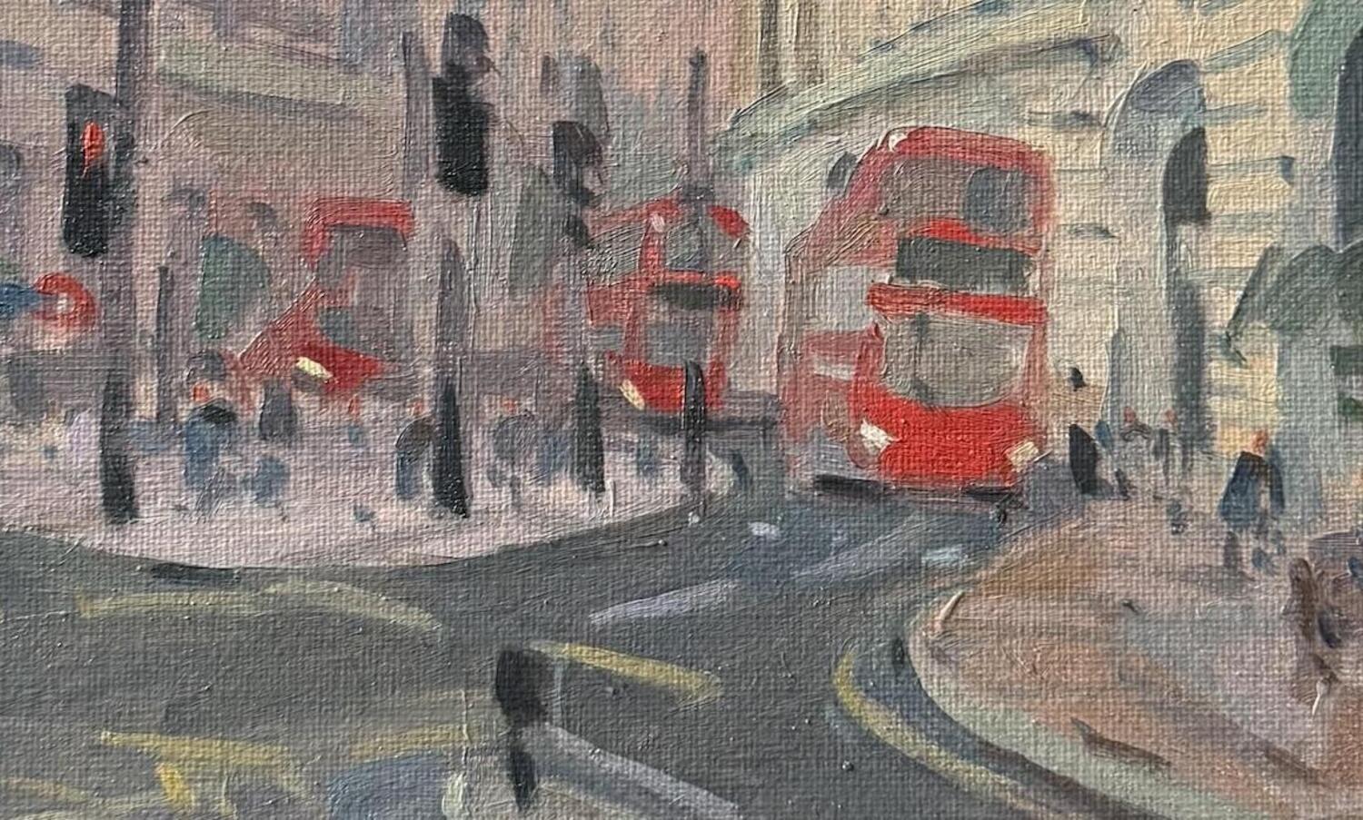 Rob paints primarily en plein air and has a particular interest in the use of wider angle perspectives and the depiction of movement within his paintings.