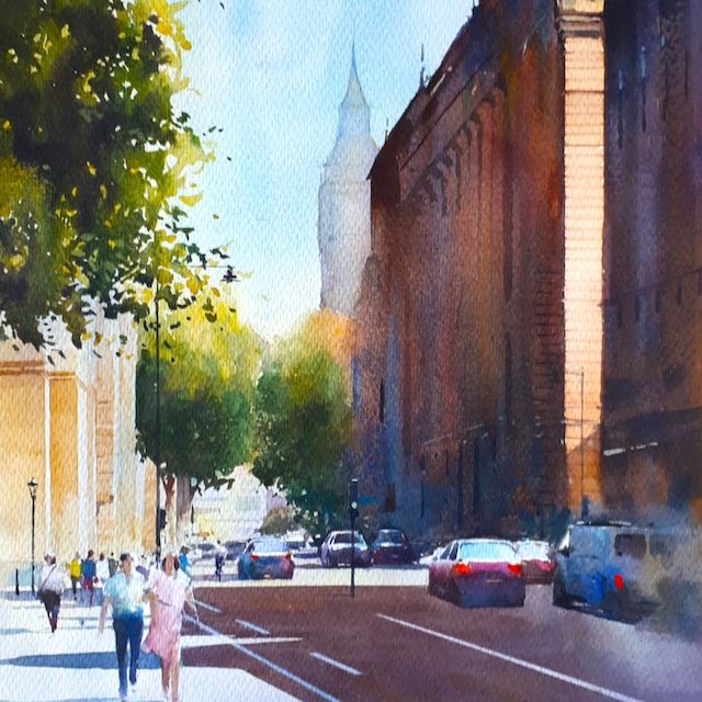 Brendan Smith RI will be painting a cityscape in watercolour with an emphasis on spontaneous wet-in-wet effects.
