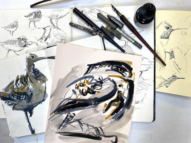 This one-day workshop is for all those new to drawing nature, as well as artists wishing to further extend their skills. It is designed to improve knowledge of anatomy, explore ways of drawing birds in their environment and build confidence in working outside.