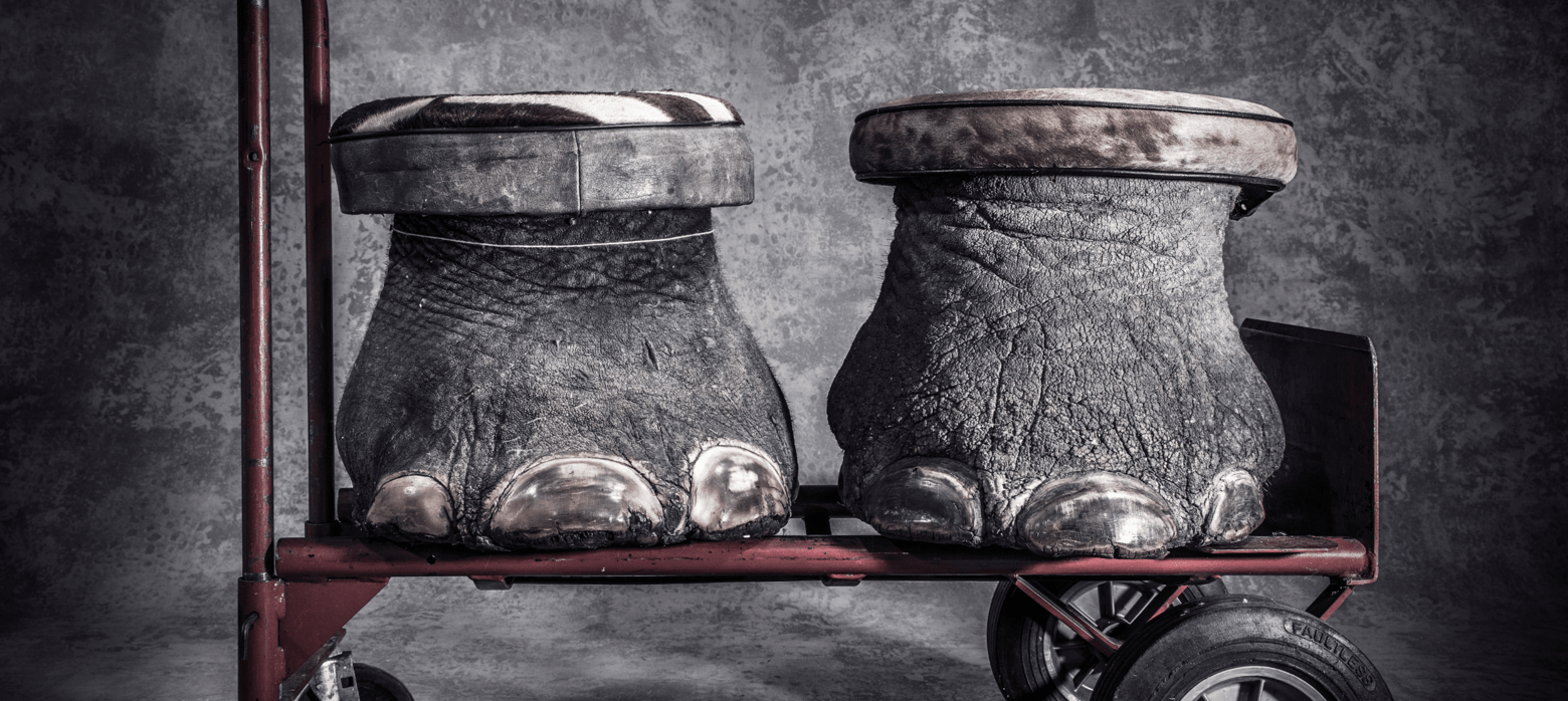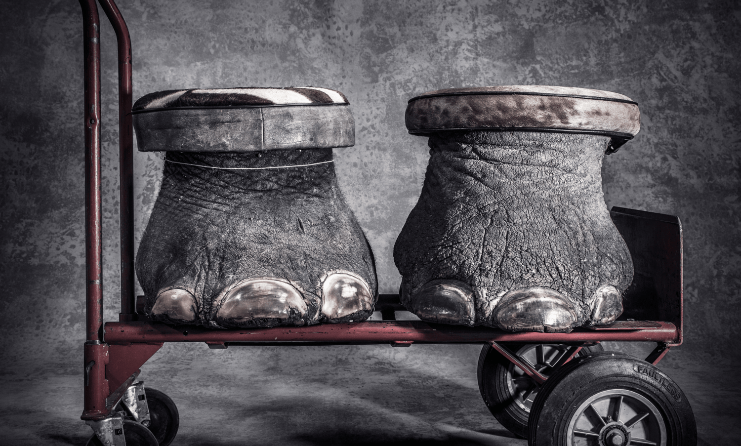 two elephant feet on a trolley