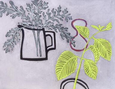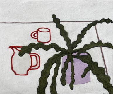 The essentials of pastel are pure pigment, intense color, creating vitality, movement and sometimes vibration where edges meet. Using textured layers to define contours and describe tensions and gestures between forms, A'Court sees things in abstract and uses the narrative of line to express her interactions with familiar objects which carve out their own space, suggesting form by the negative shapes they create.