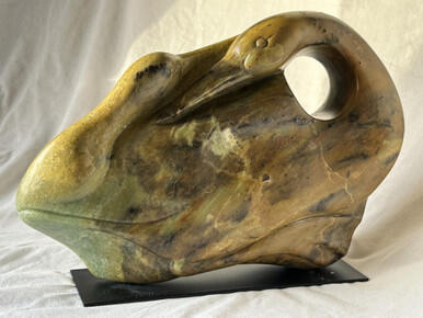 I am primarily self taught and my main medium is soapstone, a soft but very dense and heavy stone available in an extensive and subtle range of colours. My pieces are generally inspired by nature, I have a particular fascination with birds with their infinite variety and flowing movement. I work on a domestic scale, my sculptures intended to be observed and enjoyed in proximity within the home, and in some cases the garden.