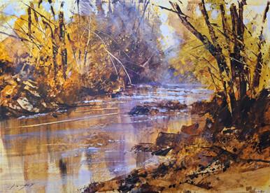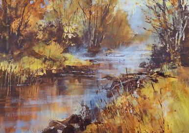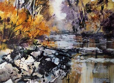 I endeavour to re-appraise my style and technique on a regular basis and this has led me towards a mixed-media approach to my work, combining watercolour, acrylic, pastel and gouache. I am exhilarated by colour and surface and enjoy creating textured layers of dry-brushed colour that allow hints of complementary hue to glow through, thus creating an exciting surface of scattered, broken colour.