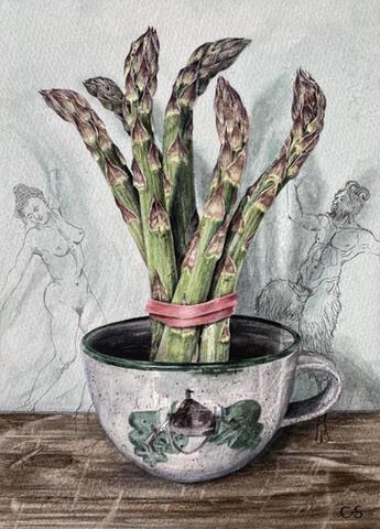 Drawing is fundamental to my artistic practice. Techniques of drawing and painting merge within my work. I love the versatility and fluidity of watercolour and enjoy combining looser washes with layered detail. Mark-making is extremely important to me. Like calligraphy, it unravels the story of the painting over time.
