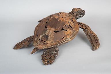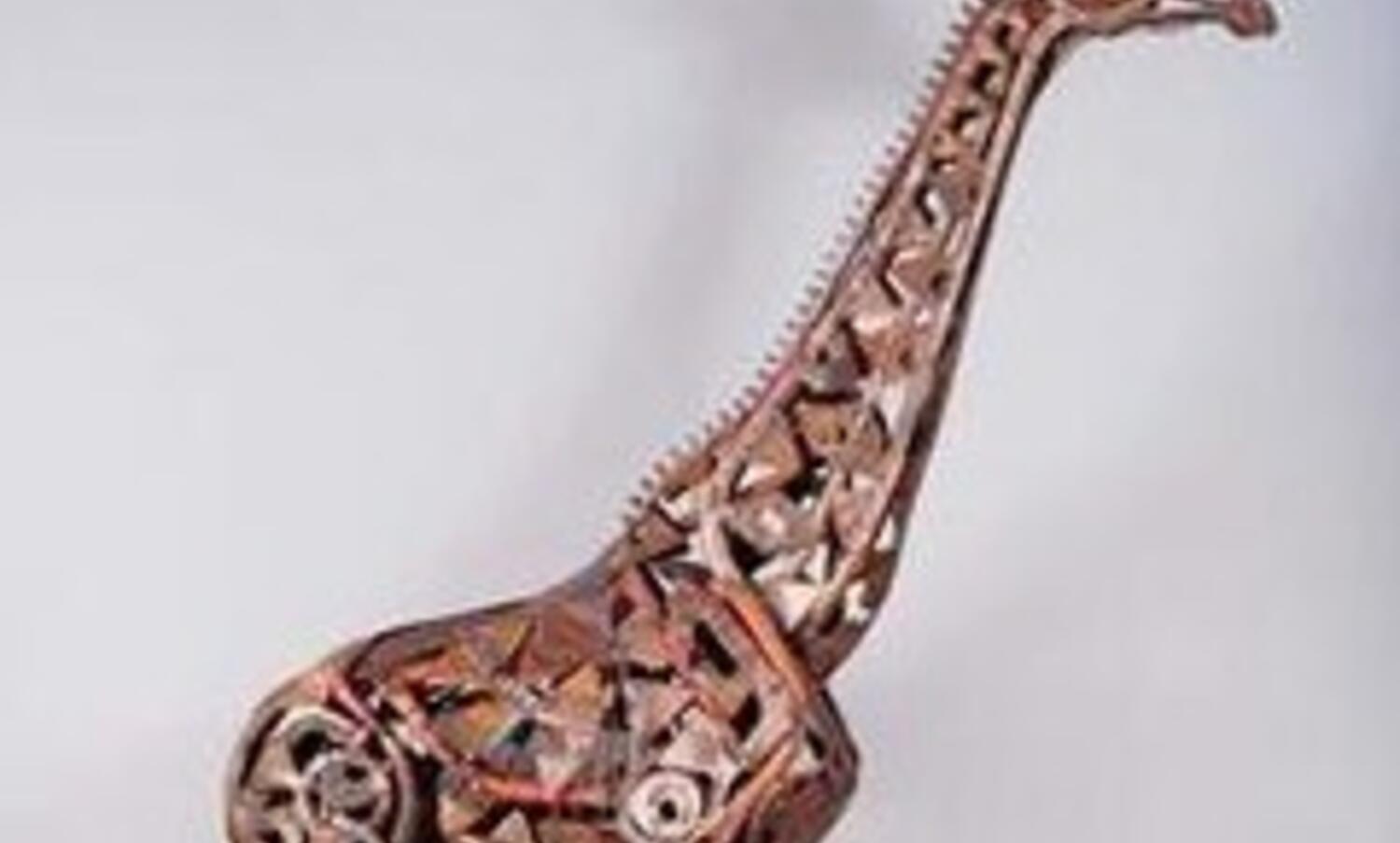 Harriet's larger sculptures, particularly the earlier public art pieces, are made of welded sheet steel around a strong steel frame but always incorporate some scrap, whether it be barbed wire for bristles, chain links for paws or nails for claws. She uses a plasma cutter to cut the sheet steel and then makes finer alterations using aviation snips. Many of the larger commissions take several months to complete. Her more recent public art pieces are made from old tools, a method which she much prefers.