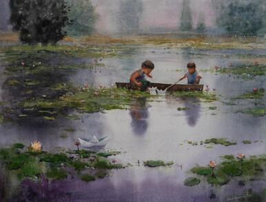 I usually wander around the city or a park and stumble upon a location that provokes me to meditate through the painting process.