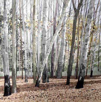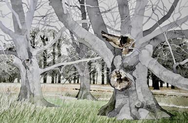 I work in a range of different materials but constantly return to watercolour. I use traditional transparent watercolour techniques, with paint being applied using a wide range of tools other than brushes. Current concerns and subject matter deal with the landscape  both in the UK and abroad. Drawings and paintings are made on location together with photographs and written notes. Paintings are completed in the studio. Strong composition, design and solid draughtsmanship together with the simple pleasure of exploiting and using the materials are my constant concerns. My intentions are not to create a photographic representation but a synthesis of things seen, something that hints at ‘sense of place’.