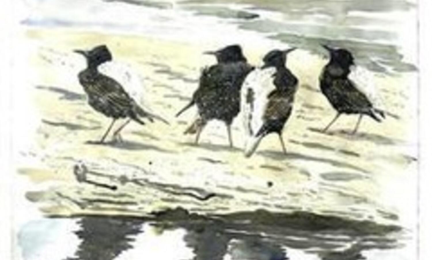 Living in the middle of the Wadden Sea, a UNESCO World Heritage Site shared by Denmark, Germany and the Netherlands, I find my motives in this spectacular landscape formed by water, wind and sand. On my home island Fanø, waders and sea birds are always present in huge numbers. Their behaviour and reaction to the turning tide, the storm surges and the ever changing and dynamic landscape is a constant source of inspiration. Feeling strong connected to the cultural and natural history of the Wadden Sea, I have a wish to express and show my intimate encounters with the area's wildlife, which is out there very close to people, but often not discovered by the public. Through artwork the public interest obviously increases, and the personal experiences and creative process leads very often to dialogue and fascination, for both the artist and the audience. My aim is to capture the moment and certain situations in the sketchbook or directly in a watercolour, and also studio work contains an element of what can be called 'nature journalising'.