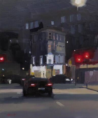 Ashcroft's paintings have evolved over the years from early abstract acrylics to using oils and more representational works. The foundations that underpin his paintings hasn’t changed and that is his fascination with light and dark and his love for the city and the landscape.