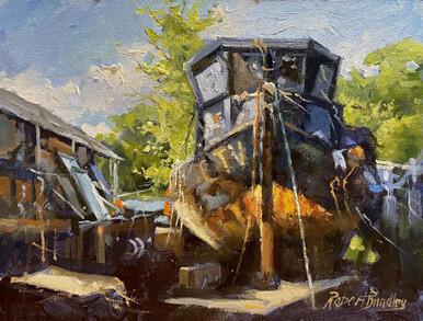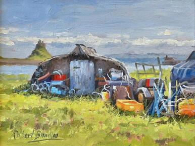 Robert's oil paintings are all painted ‘alla prima’, completed in one session, with the exception of small adjustments after reflection. They are painted on pre-prepared boards treated with texture paste and a suitably tinted ground.