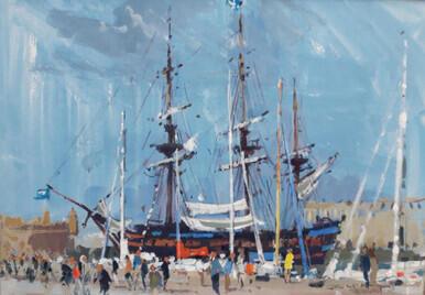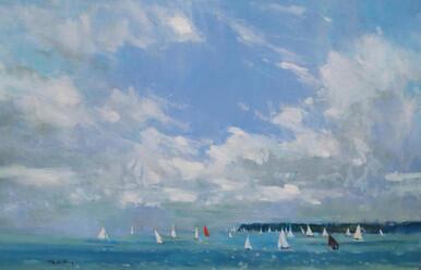 Robert King paints in oil, gouache, watercolour and pastel. His subjects of interest include marine, landscape, cityscape and figurative works of ‘The Nude’ and ‘Figures in Landscape’. All of his paintings are taken directly from life and not from photographs. Robert continues to find inspiration in Norfolk: its shorelines and beaches, the Solent, where he lives. Robert also finds inspiration in France and its town harbours and coastline, the Mediterranean and Egypt, Venice, Paris, Rome, Naples and recent visits to India.