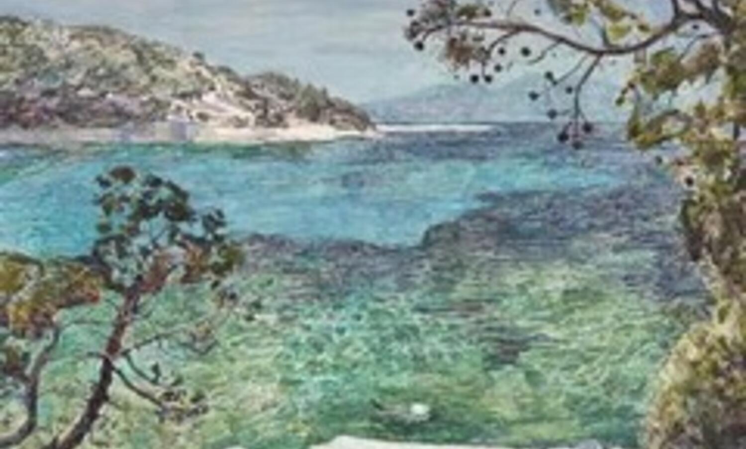 Working in egg tempera she creates a fluidity that reveals dramatic skies, mountain ranges, turbulent shallows. Superimposed onto this is the 'story of the day' be it figures on the beach, the first moment of spring, the remnants of a crop on a frosty morning.