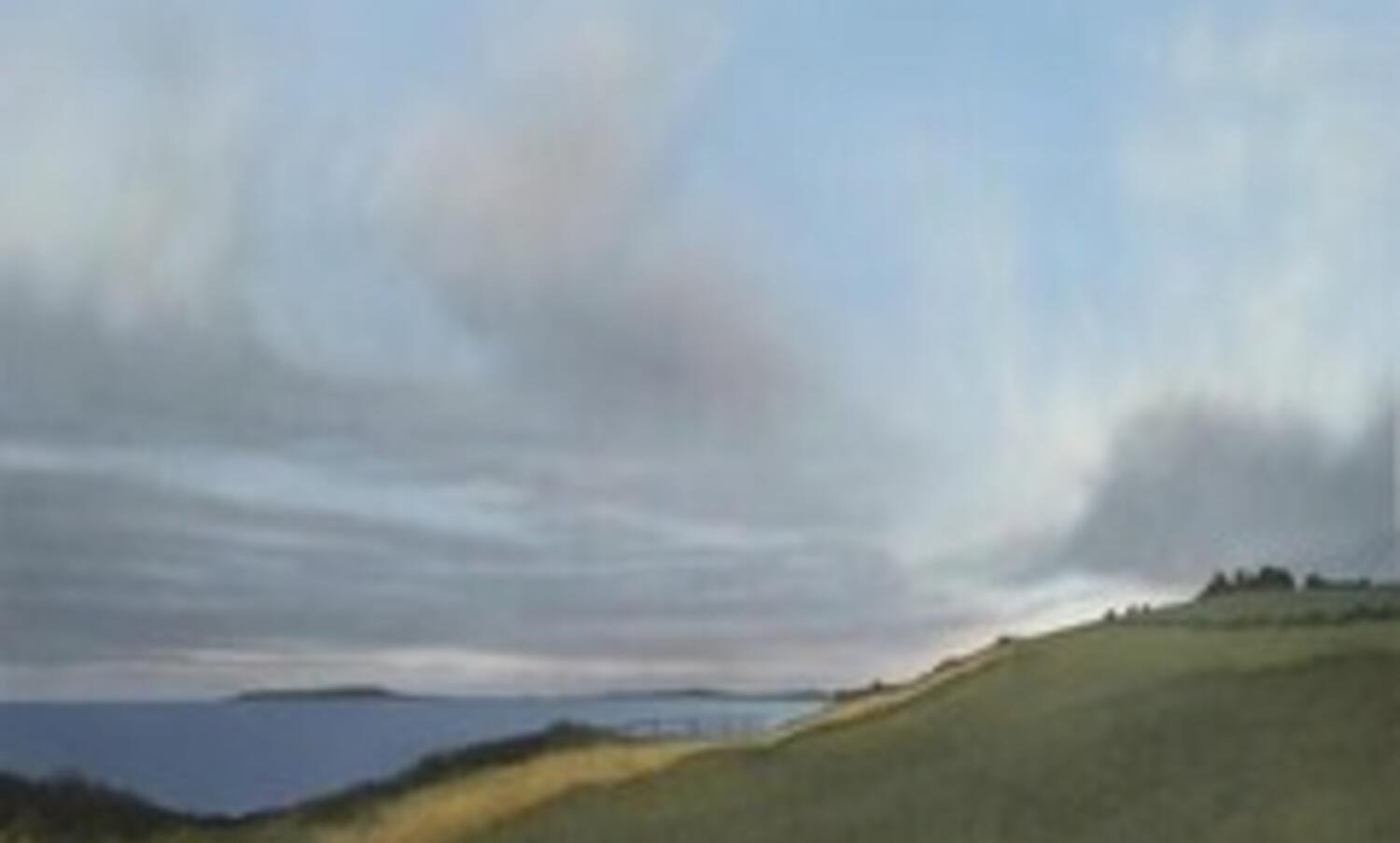 The paintings are usually wide perspective, preciously rendered, yet also contain freely created elements. I attempt to use composition and light to generate a twenty-first century perception within the continuing tradition of landscape painting. I never paint in the field but spend a high proportion of time exploring the landscape with my sketchbook and camera. For e the most creative part of the process is the assembly of a painting from he sometimes unconnected visual elements collected. Before beginning the painting phase, I usually have a fully worked drawing at full scale so that I can concentrate on light and colour. The painting medium is acrylic, on either card or canvas.