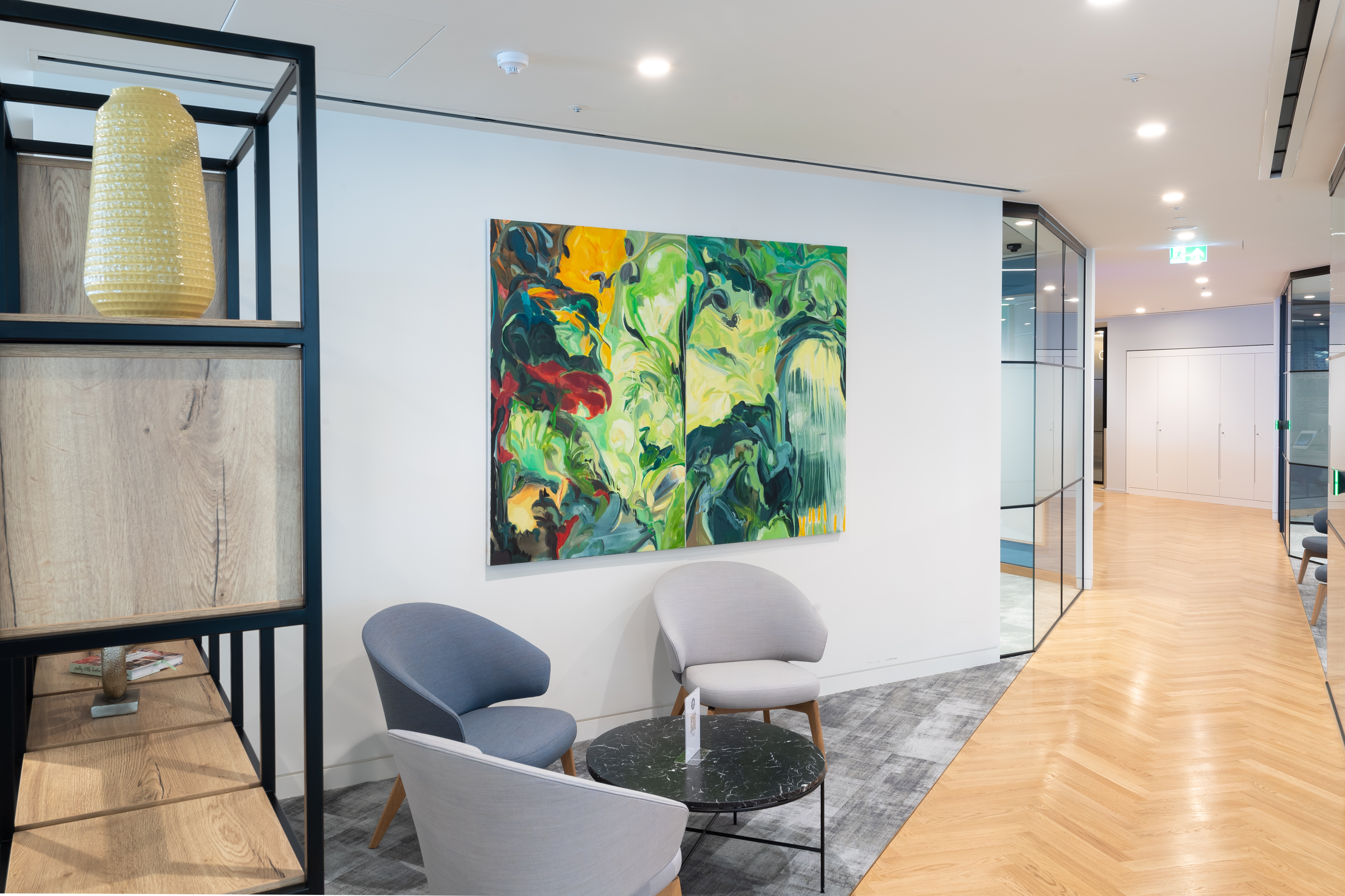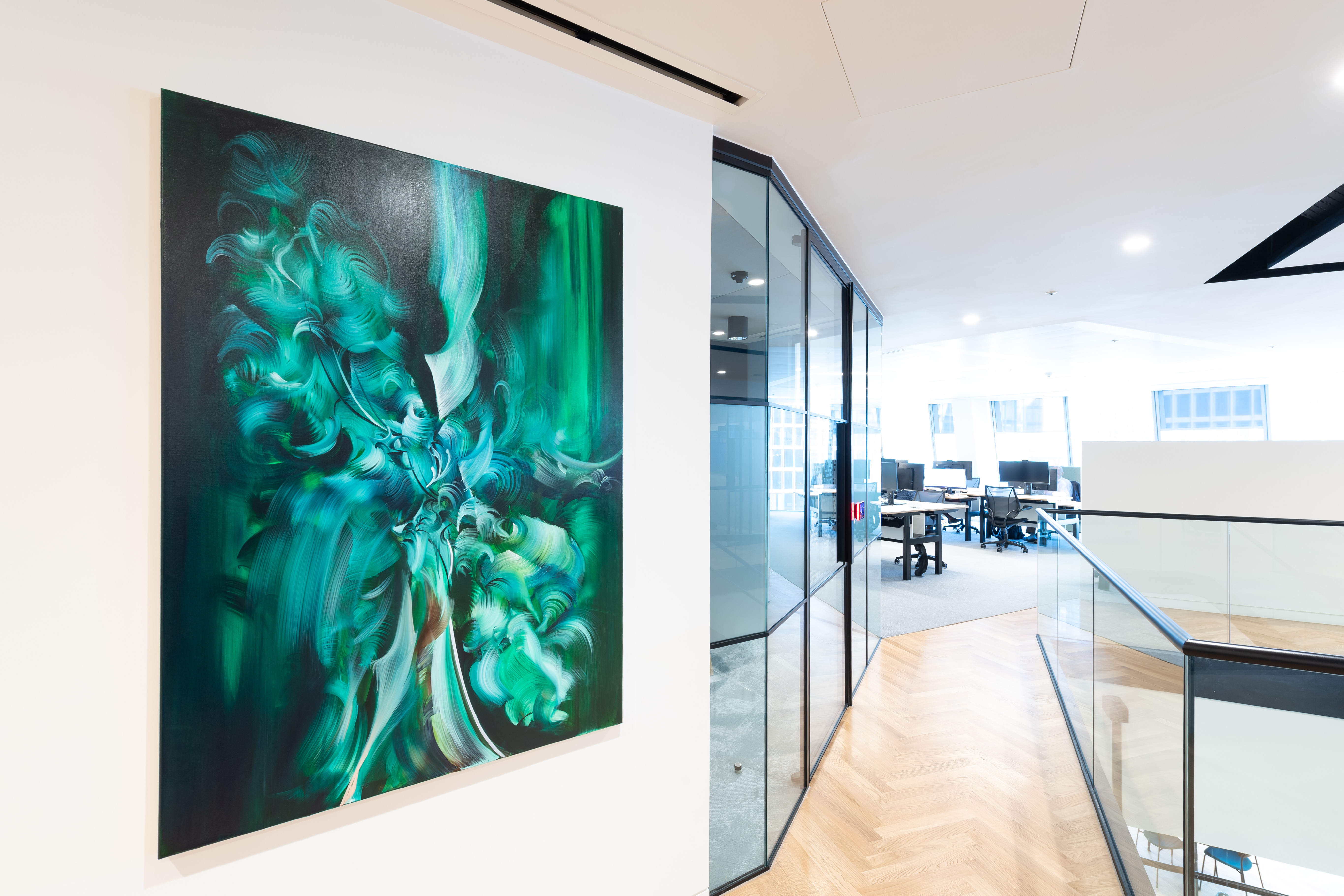 Mall Galleries Art Consultancy is delighted to unveil our latest and most significant project, taking place at the prestigious headquarters of an esteemed international company Chaucer Group. Situated in the heart of London, within the iconic skyscraper known as 'The Scalpel', this remarkable endeavour was led by Addi Aegisdottir, Sales Director and a team of eight exceptionally talented artists, carefully chosen from a pool of over a hundred portfolios.