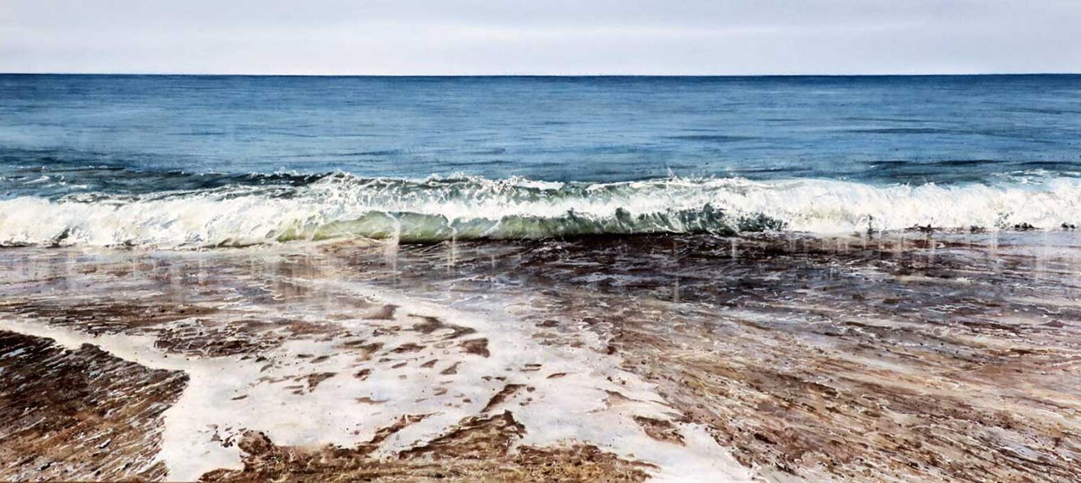 The sea has fascinated me since childhood, but if I’m honest, it scares me a bit. I have huge respect for its relentless independent power. Over the years my work has become about 'edges'. The water's edge, the edge of a cliff, an aerial view from the edge of a building or viewing platform. When standing at an edge, where moving further forward is either impossible or inadvisable, it focuses the eye and the mind and fills the senses, and maybe this is what attracts me to the water. Many of my paintings deal with an immediate huge space, or an expanse of water before the eye comes to rest on a focal point. Other paintings concentrate on an immediate change in the foreground. Either way, both have consequences if I take one more step!