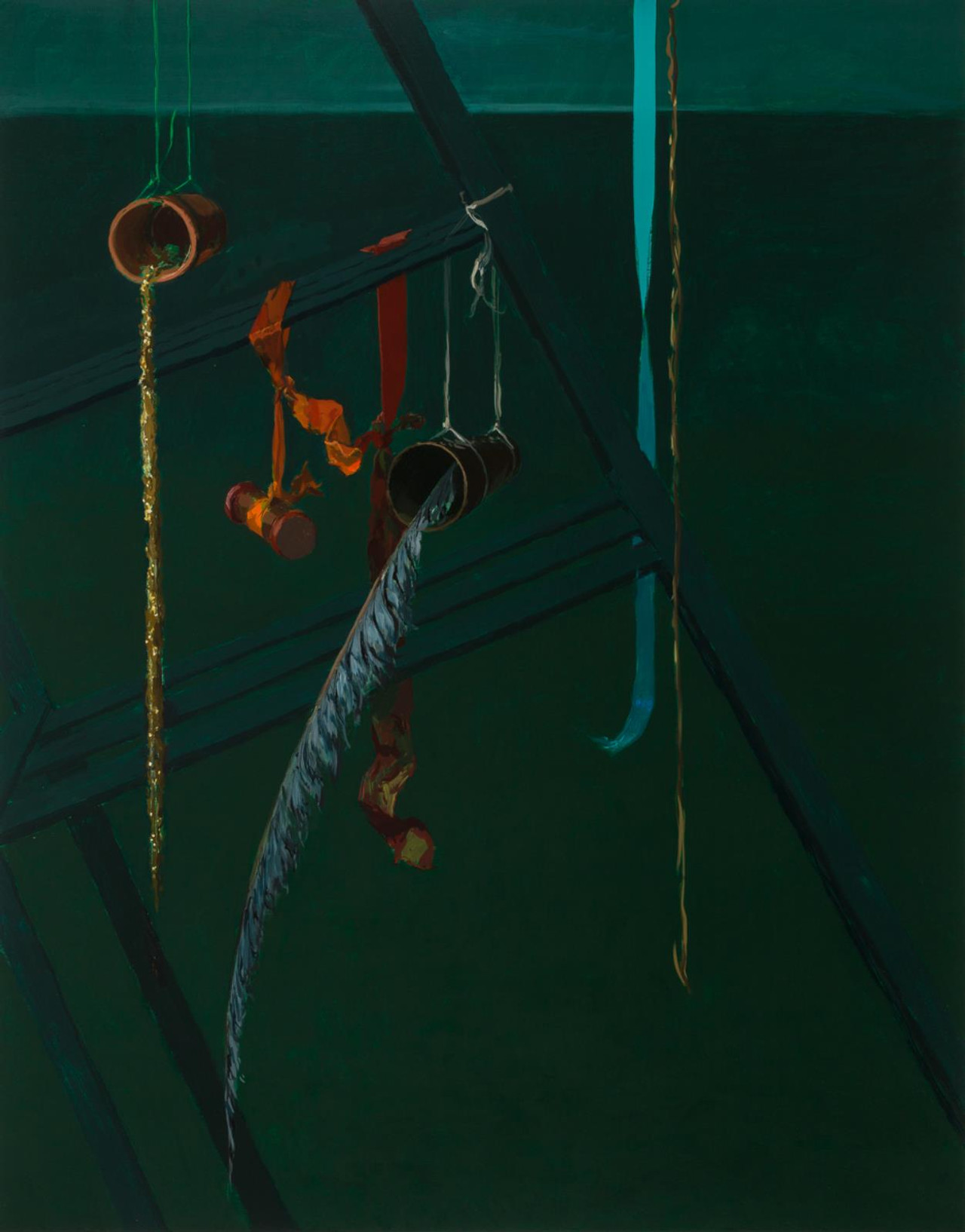 I love the word theatrical used in relation to my painting. To me, a theatre is somewhere that transports the audience to a semi-fantastical world where the props are transformed into real, magical objects. For example, a simple hoop might become a portal, or a chair a carriage. In my paintings, I aim to elevate the ordinary things around us and imbue them with significance.