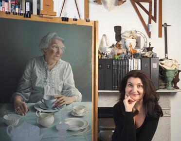 I paint mainly in oil and my technique has evolved over time. I used to paint quite complex and slightly surreal still lifes, as well as allegorical and architecturally inspired works, now I am focused mainly on portraiture, although I like to bring elements of still life, allegory and sometimes a touch of surrealism into my portrait-based paintings. I am also experimenting with mixed media, I like the freedom and inventiveness it brings to my process, and the fact that I seem more comfortable and willing to allow elements of abstraction to creep into the work too.