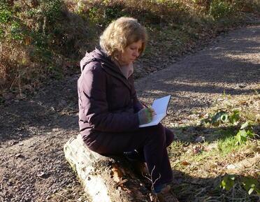 I paint using various watercolour techniques including layers often comprising foreground, middle distance and background. These layers harden and are then manipulated including through wetting, scratching and sanding to change or reveal the layer below or the watercolour paper itself. The fine details of small shrubs, buds, seed heads, leaves, brambles and branches are often revealed through painting the negative shapes, the spaces between the shrubs, rather than the shrubs themselves.