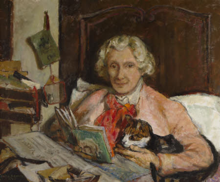 Atwood exhibited a portrait of ‘Miss Edith Craig’ in 1916, then ‘Christopher St John’ in 1917, both at the NEAC. Later with the Club, in 1943, Atwood exhibited a painting of Edy with cat George, pictured above (4).