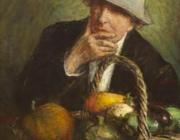 (1) Self-portrait in a Hat with a Basket of Vegetables by Clare Atwood (Richmond, Surrey 1866-Tenderden, Kent 1962), oil painting on canvas, 1951, 610 x 508 mm. © National Trust Images.