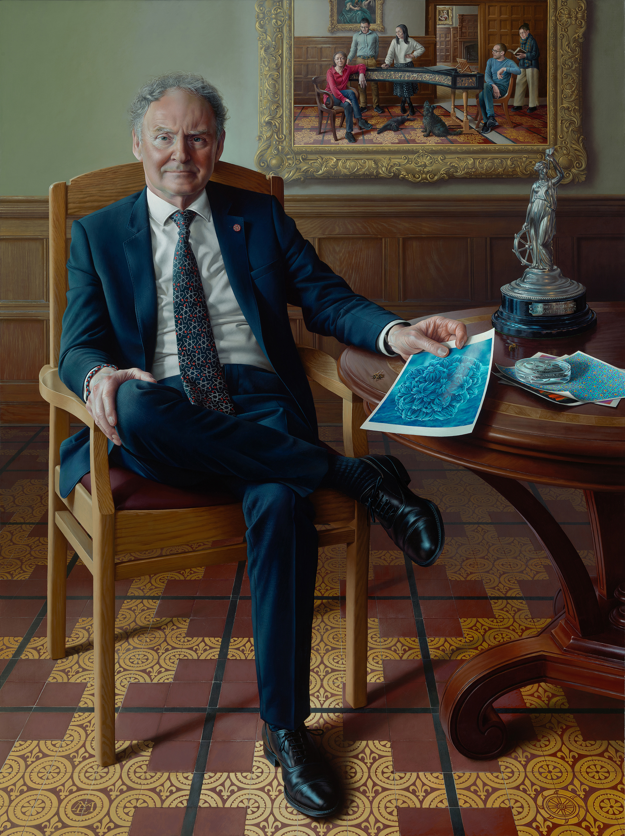 2. Miriam Escofet RP, 'Professor Sir Mark Welland, Master of St Catherine’s College Cambridge', oil on linen over panel, 120cm x 90cm