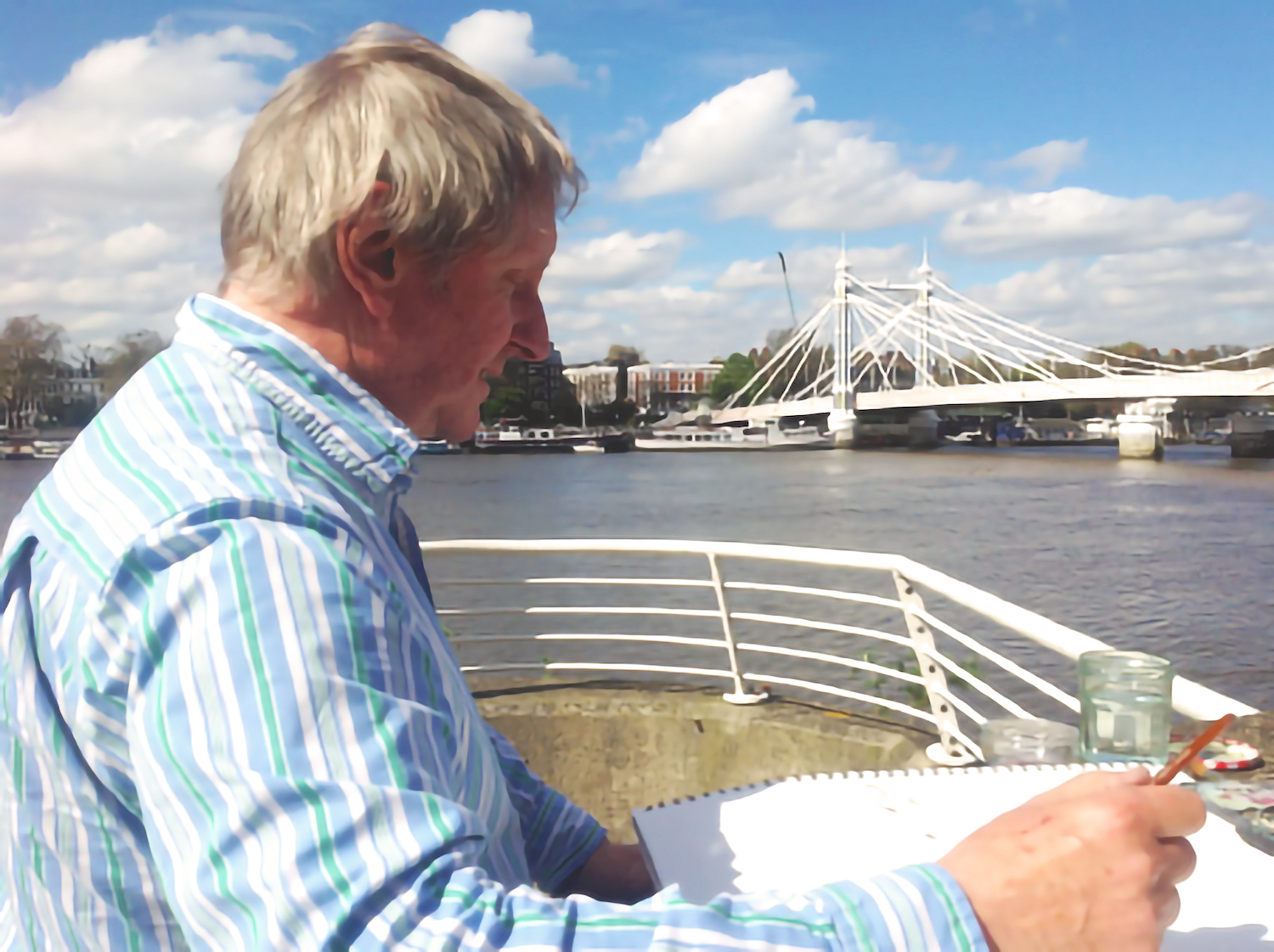 Chris Orr is a narrative artist whose work ranges across a variety of subjects and ideas which include his speculations about the myths and lives of people such as John Ruskin, Albrecht Dürer, William Blake and Kurt Schwitters, to a fascination with the physical and social nature of the modern city. The most recent work often derives from painting and drawing on location. His work is packed with detail and rewards the viewer with interesting surprises. He is a natural anarchist and shows no compunction in putting a cricket bat into both Dürer‘s studio and Ruskin’s room. Besides a powerful painterly preoccupation with the world as he sees it, he fits into an English and European tradition of graphic satire and commentary. He engages with contemporary life and a sense of how the past has shaped us. Those who collect his work, and there are many, talk of a life-long engagement with his world contained within the pictures.