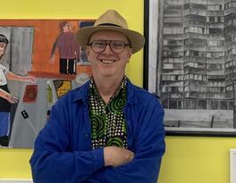 Bob and Roberta Smith OBE RA is actually one man. He used to collaborate with his sister but she retrained to become a group psychiatric specialist. Bob and Roberta Smith use words painted on canvases and made into signs, written in newspapers and sung in songs to say statements about art and free expression that have influenced generation of teachers and students of arts subjects to embrace the idea that the arts are a human right. Bob and Roberta Smith's painting ‘Make Art Not War’ has become a ubiquitous classic image selling alongside Andy Warhol’s Marilyn and Lichtenstein’s ‘Whaam!’ in Museum shops. Bob and Roberta’s painting of surgeon David Nott’s interview with BBC journalist Eddie Mair was recently included in the collection of the National Gallery of Wales.