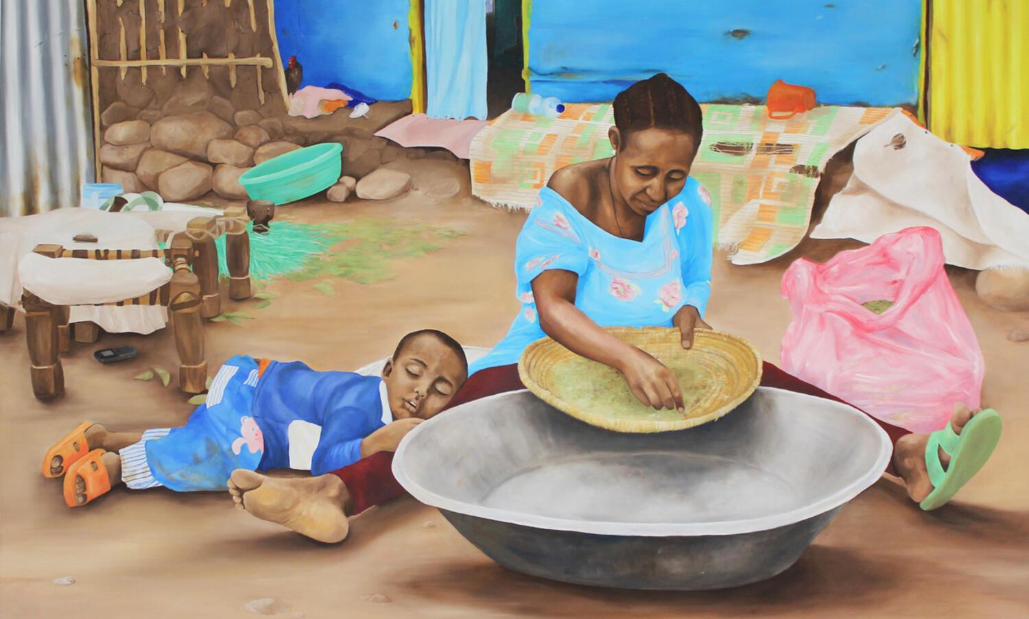 Catherine Chambers is a London-based artist whose works are filled with places and people from her experiences of living abroad in Ethiopia and the Middle East.