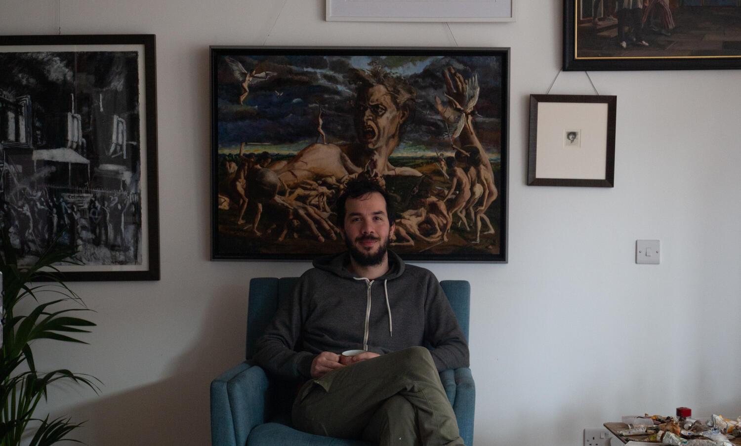 I’ve just finished my most ambitious painting to date. It’s a large triptych about the Grenfell fire. The first panel depicts the prelude, the middle panel the fire itself, and the final panel the aftermath.