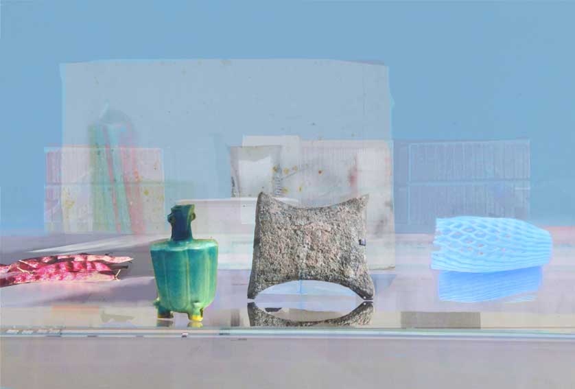 If I can take an object back to the studio or spend time making a drawing then I do. Otherwise, I take photos or draw from memory. Drawing or setting up a photo heightens my observations as shapes get simplified and I notice details which might ordinarily be overlooked. Sometimes I set up compositions and other times I combine or layer objects together digitally, but often it is a combination of both.