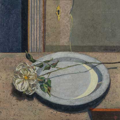 I’ve been ruminating for a while, sketching ideas for a painting of objects balanced on my head or serving my head on a plate. I was then encouraged to explore the idea after seeing a fantastic painting, ‘Heads of the Family’, by Vlaho Bukovac when I was in Vienna. I also am a still life teacher, and it’s really a painting of ideas, showing myself thinking of compositions! I was concentrating on building up interesting textures. I wanted everything to mirror the calcium feel of the shell and it to feel like everything was nearly one connected object, like a piece of coral.