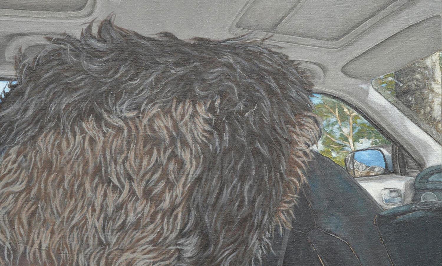 On an intimately small scale, Maddy's paintings ritualistically stalk household pets. She devotes herself to unironically deifying the ephemeral pet while observing the humour and tenderness of the relationship between human and animal. Goodbye Mitsubishi! bids farewell to a longstanding family car