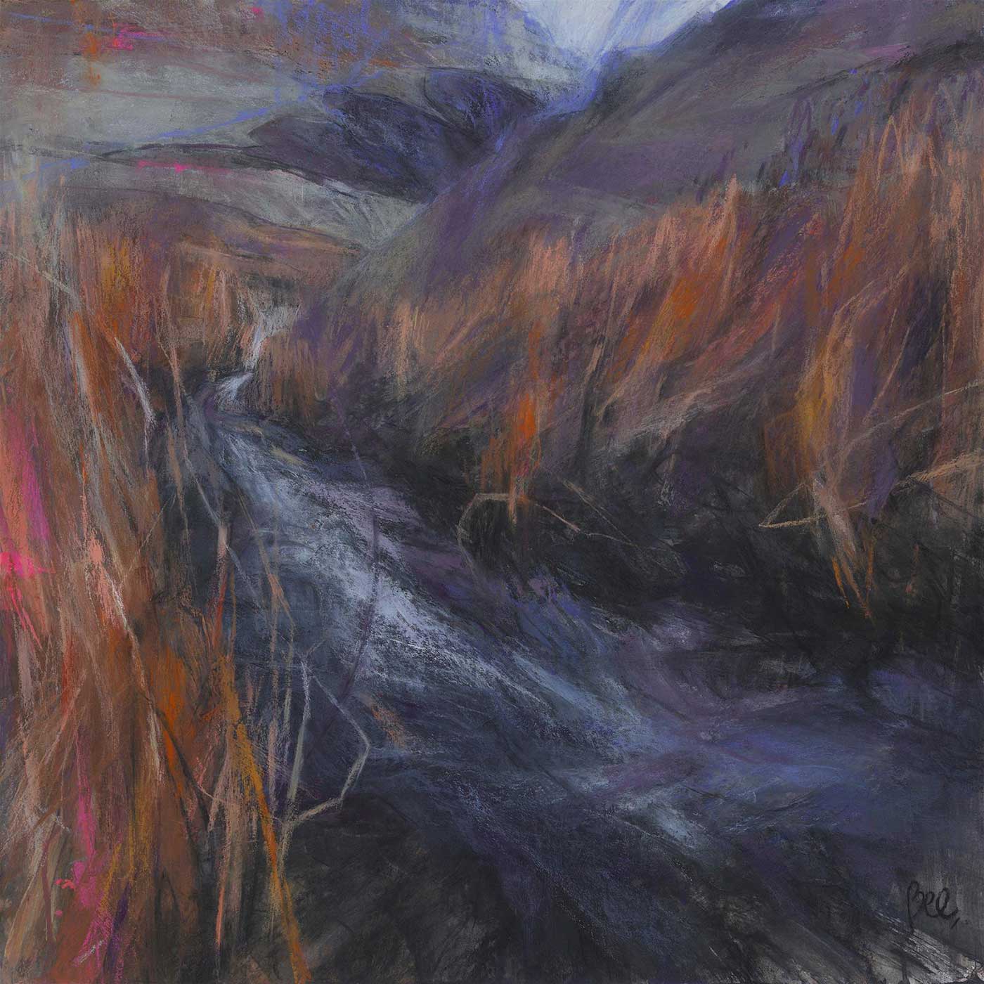 I produce my paintings in my studio, having sketched and made notes out at the location. I find it helps me to produce the essence of what I have seen and felt, without the distraction of extraneous information.
