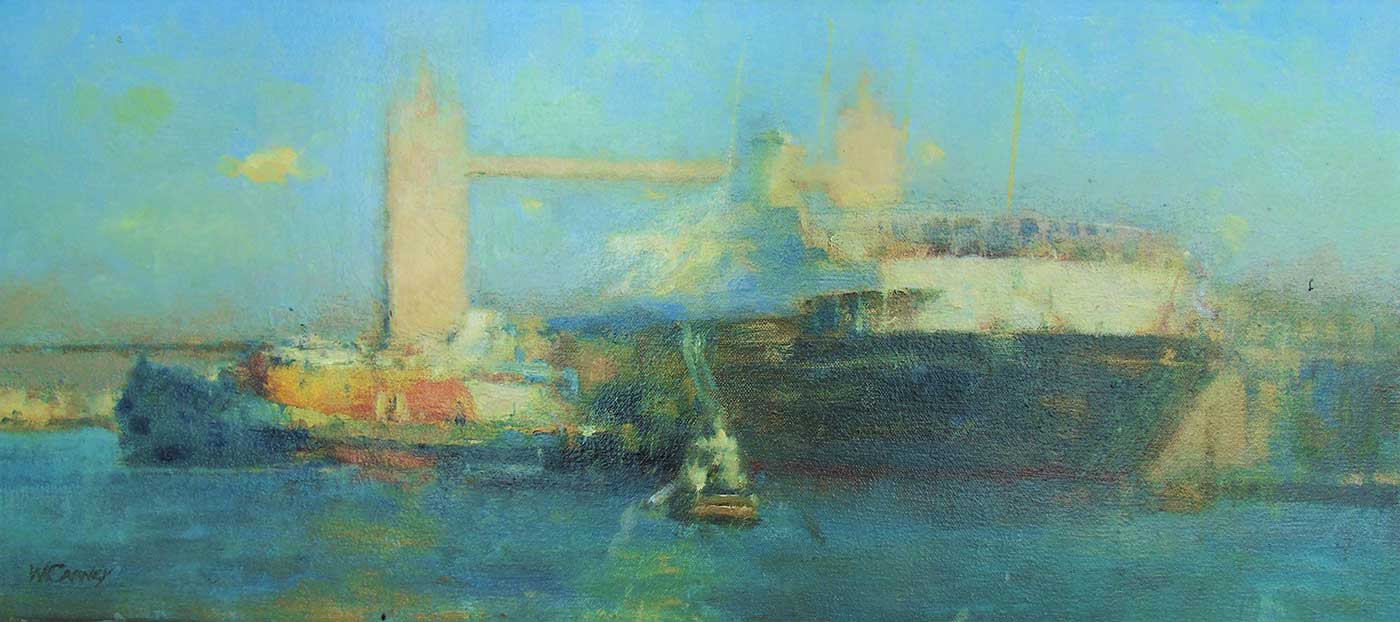 In my painting, I included Tower Bridge in the background to indicate to the viewer where she was moored on the Thames, City of London.
