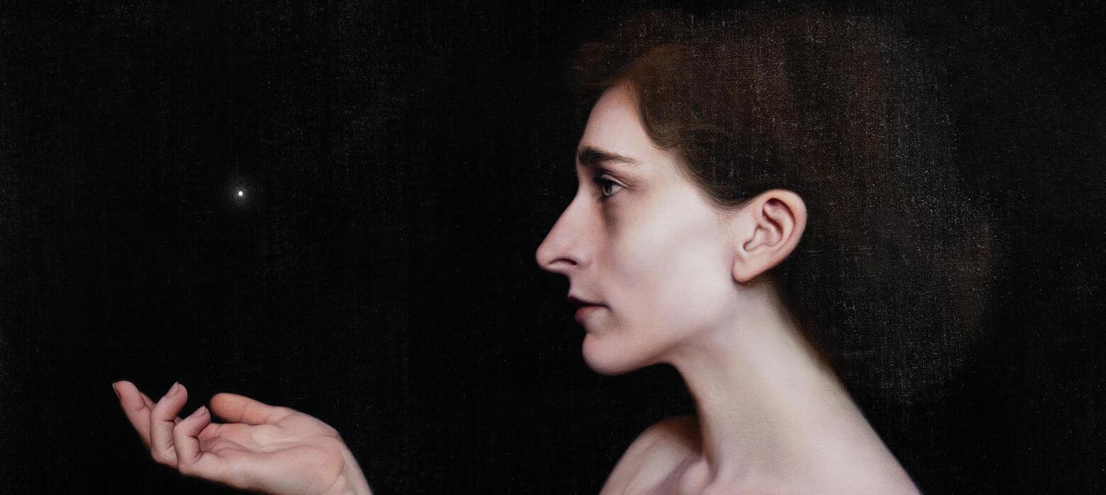 You are exhibiting one exquisite oil on canvas in this year's exhibition, 'Light in the Well of Shadows'. Could you share some insights about this cryptic portrait?