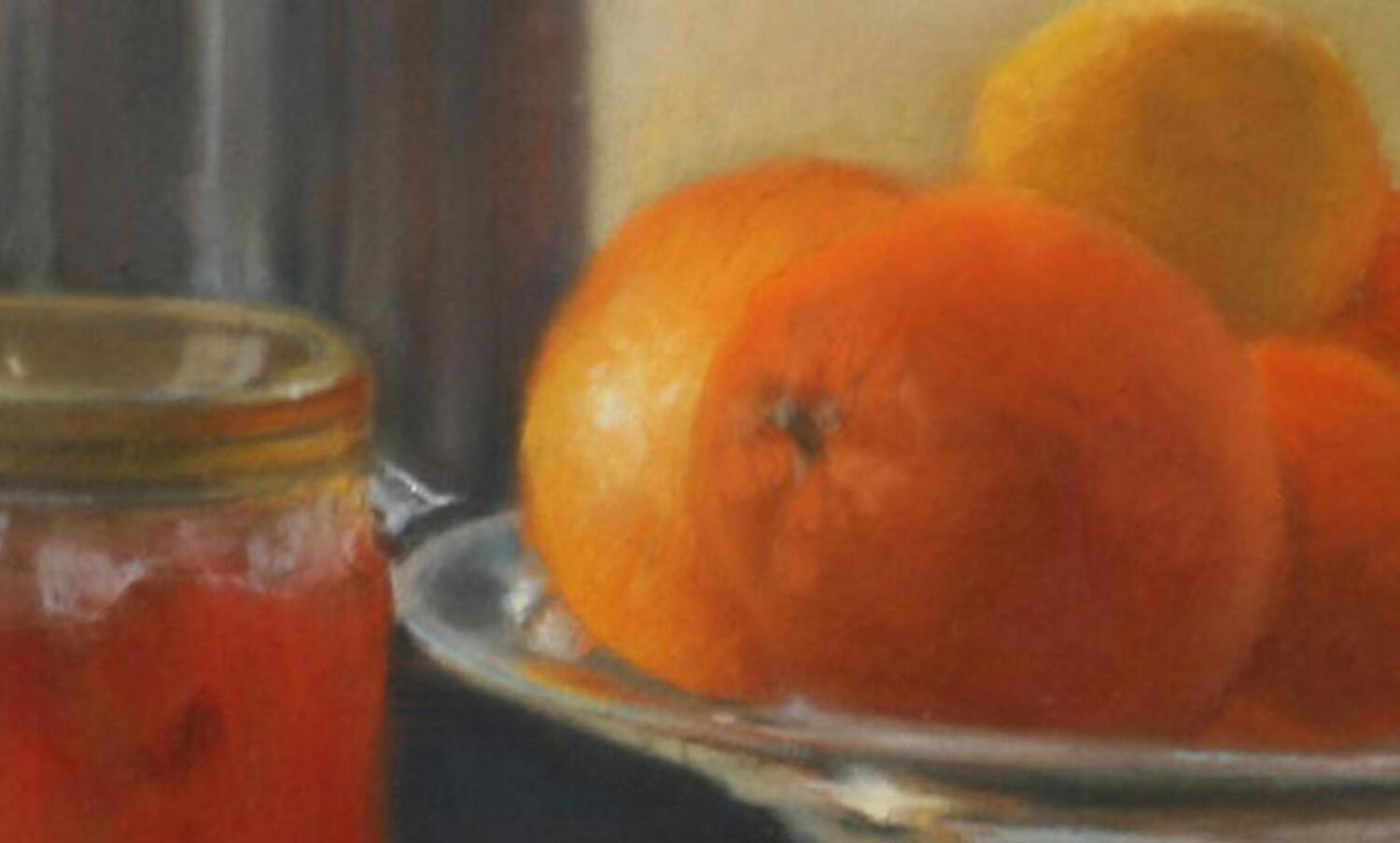 I love the colour and textures that the subject has to offer and one of my favourite effects is the transmitted light achieved through backlighting and the flesh of citrus. and preserving the fruit as jams and marmalade opens up another dimension, the opportunity to paint all the wonderful reflections on the glass jars and metal screw tops.