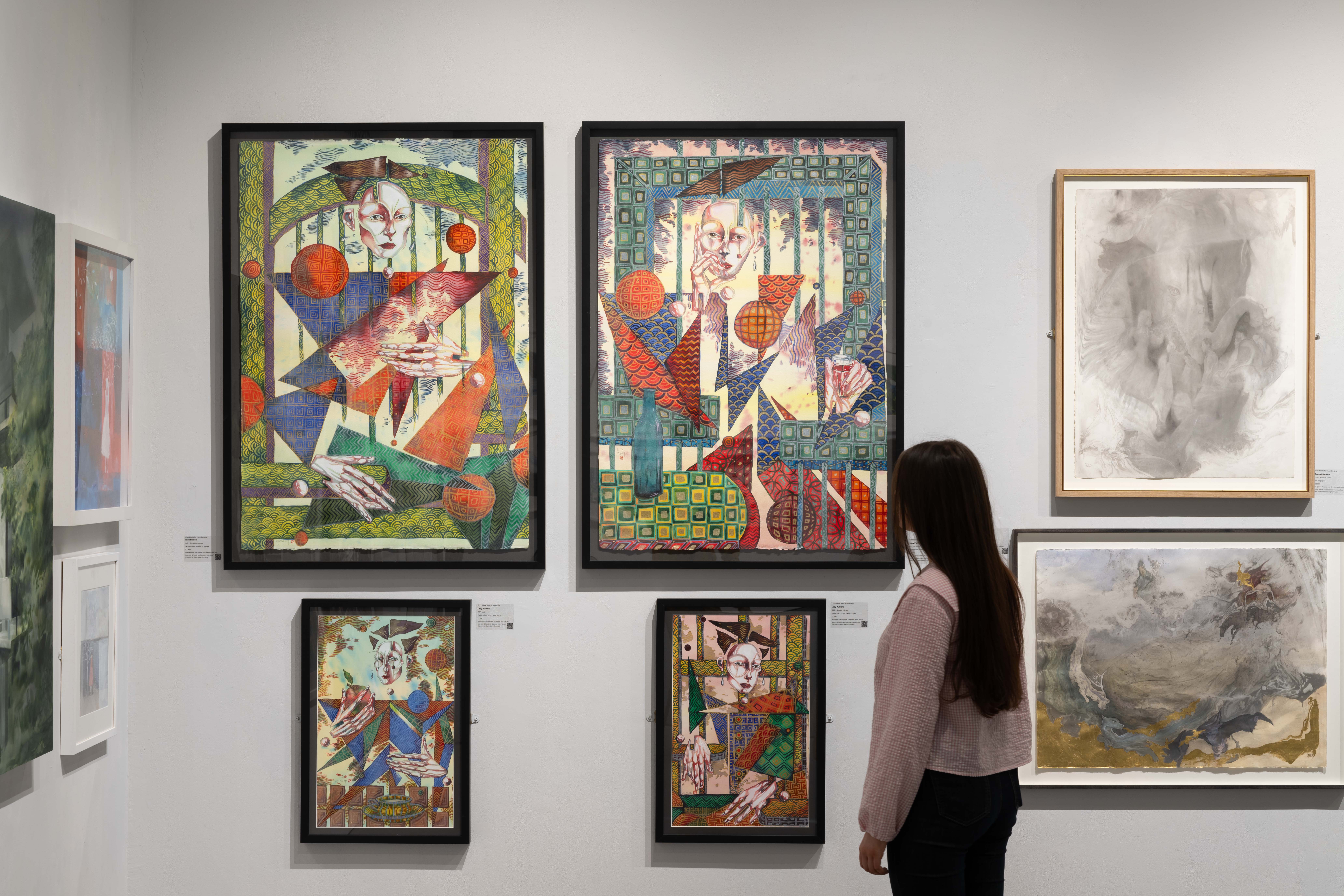 The prize winning works are selected in time for the awards ceremony during the Private View, prior to the exhibition opening to the public.