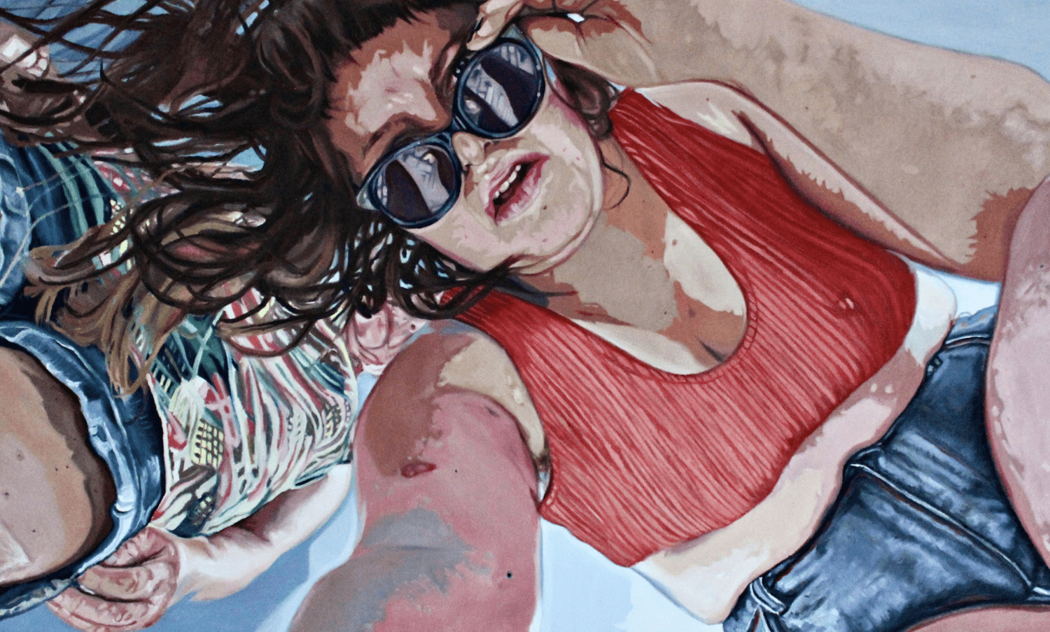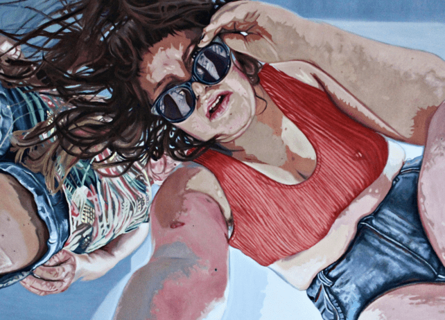 It is through the way that I observe these details that my outlines and saturated colours come to operate with a screen like vibrancy, reflecting a hybridisation of traditional techniques and contemporary technologies. I use oil paint like I am using the cut-out tool on Photoshop, which reflects one way in which I have felt accustomed to seeing life backlit via my screen'.